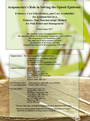 Written as part of a joint effort between The American Society of Acupuncturists (ASA), The American Alliance for Professional Acupuncture Safety (AAPAS), The Acupuncture Now Foundation (ANF), The American TCM Association (ATCMA), The American TCM Society (ATCMS), and National Federation of TCM Organizations (NFTCMO).